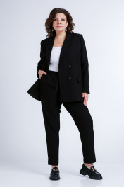 Деловой комплект брюки зауженные и жакет из текстиля Liona Style 858 черный