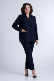 Деловой комплект брюки зауженные и жакет из текстиля Liona Style 858 синий