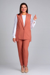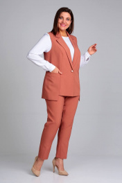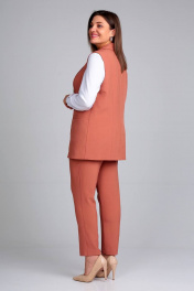 Деловой женский костюм 3 предмета жилет, брюки, блуза Liona Style 859 терракот