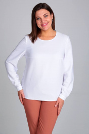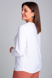 Комплект женский 3-х предметный: жилет, брюки и блуза. Жилет полуприталенного силуэта с центральной бортовой застежкой на петлю и пуговицу. Воротник пиджачного типа с отложными лацканами. По переду жилета рельефы. На бочках переда функциональные карманы с листочкой. Спинка с центральным швом и рельефами. Жилет на подкладке. Блузка с округлой формой горловины, рукав втачной, низ рукава на притачной манжете с застёжкой на петли и пуговицу. Брюки заужены к низу. Верхний срез брюк на притачном поясе на резинке с тесьмой из основной ткани. Длина жилета по середине спинки: 74 см. Длина рукава блузы: 63 см. Длина блузы по спинке: 61 см. Длина брюк по боковому шву с учётом пояса: 104 см.