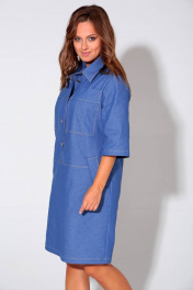 Демисезонное джинсовое платье с накладными карманами и воротником-стойкой Liona Style 866 светло-синий