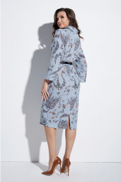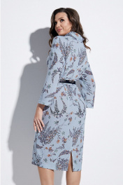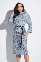 Платье с воротником хомут, спущенной линией плеча и съёмным поясом по талии. Изделие с карманами в боковых швах. Спинка с разрезом в среднем шве. Рукава втачные.