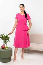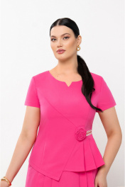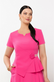Блуза с фигурным вырезом горловины. Перед с фигурной деталью длиннее низа, складками с одной стороны, декоративной тесьмой и цветком из ткани. Спинка с потайной молнией в среднем шве и талиевыми вытачками. Рукава втачные. Юбка на притачном поясе с резинкой. Переднее полотнище с наклонными карманами к боковым швам и складками от пояса. Заднее полотнище с потайной молнией в среднем шве и складками от пояса. Юбка на подкладке. ВОЗМОЖНА ЗАМЕНА ФУРНИТУРЫ НА АНАЛОГИЧНУЮ ТАКОГО ЖЕ КАЧЕСТВА.