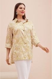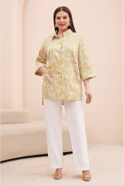 Летний костюм из текстиля с брюками-палаццо и рубашкой Lissana 4733 желтый