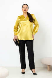 Элегантная блуза из атласа с складками и жемчугом Lissana 4803 золото