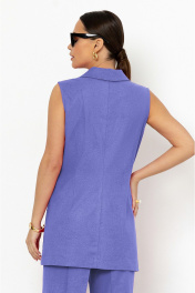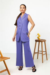 Костюм брючный. Жилет со стояче-отложным воротником пиджачного типа и смещённой застёжкой на петли с пуговицами и пришивную кнопку. Перед с карманами с клапаними в нижней части. Спинка со средним швом и талиевыми вытачками. Брюки на поясе с резинкой. Передние половинки с наклонными карманами к боковым швам. ВОЗМОЖНА ЗАМЕНА ФУРНИТУРЫ НА АНАЛОГИЧНУЮ ТАКОГО ЖЕ КАЧЕСТВА.