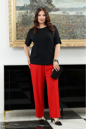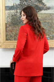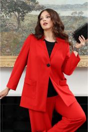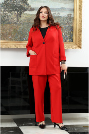 Дизайнерский костюм с блузой, жакетом и прямыми брюками Lissana 4939 брусничный