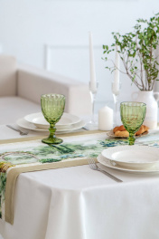 Дорожки коллекции «ИТАЛЬЯНО» имеют специальную пропитку (влаго-, масло- и грязеотталкивающую обработку). Принт на ткани нанесен методом цифровой печати с использованием высококачественных красителей, благодаря чему изделия не линяют и не меняют свой цвет после многократных стирок. Рисунок по ткани виден только на лицевой стороне. Дорожка на стол "ИТАЛЬЯНО" размером 40х185см. Дорожка может расстилаться как поверх скатерти, так и отдельно, чтобы подчеркнуть фактурную поверхность стола; как вдоль стола, так и поперёк, создавая эффект "диалога" между людьми, сидящими друг напротив друга. Упаковка товара: Полипропиленовый пакет