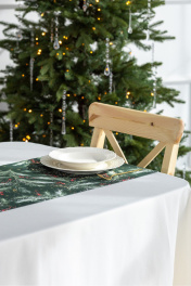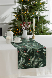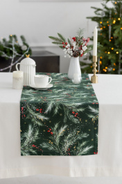 Дорожка на стол "Ветви рождества на изумрудном",100% хлопок