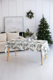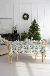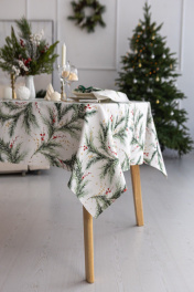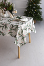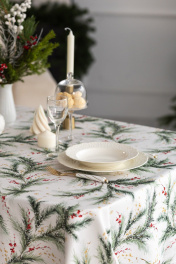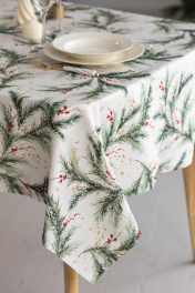 Скатерть "Ветви рождества", 100% хлопок Все скатерти коллекции «ВЕТВИ РОЖДЕСТВА» выполнены из ткани для столового белья плотностью 180 г/кв.м и имеют специальную пропитку (влаго-, масло- и грязеотталкивающую обработку). Принт на ткани нанесен методом цифровой печати с использованием высококачественных красителей, благодаря чему изделия не линяют и не меняют свой цвет после многократных стирок. Рисунок по ткани виден только на лицевой стороне. ЭКСКЛЮЗИВНЫЙ ДИЗАЙН: элегантный принт с веточками хвои и яркими красными ягодами создаёт изысканный и уютный акцент на вашем столе. Погрузитесь в атмосферу уюта и праздничного волшебства с нашей эксклюзивной коллекцией столового текстиля Ветви Рождества! УХОД ЗА ИЗДЕЛИЕМ: Изделия из натуральных тканей требуют особого ухода. Стирка при температуре 30 С; деликатный отжим (чтобы уменьшить смятость изделия), гладить изделия полувлажными при максимальной температуре, не отбеливать. Если при использовании изделий было нанесено пятно, рекомендуем испачканное изделие постирать не позднее следующего дня, т.к. натуральные нити ткани быстро впитывают натуральные красители еды и напитков (чай, кофе, соусы). При стирке изделий допускается использование пятновыводящих средств для цветного белья. После стирки возможна усадка изделия на 3-5%.