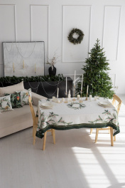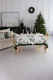 Скатерть "Ветви рождества", 100% хлопок Все скатерти коллекции «ВЕТВИ РОЖДЕСТВА» выполнены из ткани для столового белья плотностью 180 г/кв.м и имеют специальную пропитку (влаго-, масло- и грязеотталкивающую обработку). Принт на ткани нанесен методом цифровой печати с использованием высококачественных красителей, благодаря чему изделия не линяют и не меняют свой цвет после многократных стирок. Рисунок по ткани виден только на лицевой стороне. ЭКСКЛЮЗИВНЫЙ ДИЗАЙН: элегантный принт с веточками хвои и яркими красными ягодами создаёт изысканный и уютный акцент на вашем столе. Погрузитесь в атмосферу уюта и праздничного волшебства с нашей эксклюзивной коллекцией столового текстиля Ветви Рождества! УХОД ЗА ИЗДЕЛИЕМ: Изделия из натуральных тканей требуют особого ухода. Стирка при температуре 30 С; деликатный отжим (чтобы уменьшить смятость изделия), гладить изделия полувлажными при максимальной температуре, не отбеливать. Если при использовании изделий было нанесено пятно, рекомендуем испачканное изделие постирать не позднее следующего дня, т.к. натуральные нити ткани быстро впитывают натуральные красители еды и напитков (чай, кофе, соусы). При стирке изделий допускается использование пятновыводящих средств для цветного белья. После стирки возможна усадка изделия на 3-5%.