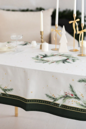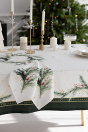 Скатерть "Ветви рождества", 100% хлопок Все скатерти коллекции «ВЕТВИ РОЖДЕСТВА» выполнены из ткани для столового белья плотностью 180 г/кв.м и имеют специальную пропитку (влаго-, масло- и грязеотталкивающую обработку). Принт на ткани нанесен методом цифровой печати с использованием высококачественных красителей, благодаря чему изделия не линяют и не меняют свой цвет после многократных стирок. Рисунок по ткани виден только на лицевой стороне. ЭКСКЛЮЗИВНЫЙ ДИЗАЙН: элегантный принт с веточками хвои и яркими красными ягодами создаёт изысканный и уютный акцент на вашем столе. Погрузитесь в атмосферу уюта и праздничного волшебства с нашей эксклюзивной коллекцией столового текстиля Ветви Рождества! УХОД ЗА ИЗДЕЛИЕМ: Изделия из натуральных тканей требуют особого ухода. Стирка при температуре 30 С; деликатный отжим (чтобы уменьшить смятость изделия), гладить изделия полувлажными при максимальной температуре, не отбеливать. Если при использовании изделий было нанесено пятно, рекомендуем испачканное изделие постирать не позднее следующего дня, т.к. натуральные нити ткани быстро впитывают натуральные красители еды и напитков (чай, кофе, соусы). При стирке изделий допускается использование пятновыводящих средств для цветного белья. После стирки возможна усадка изделия на 3-5%.