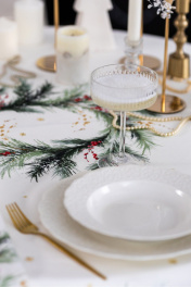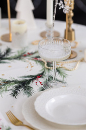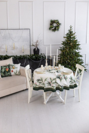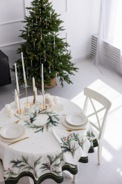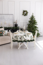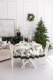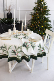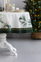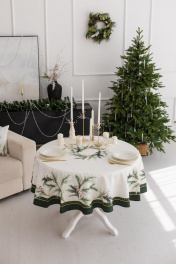 Скатерть "Ветви рождества", 100% хлопок Все скатерти коллекции «ВЕТВИ РОЖДЕСТВА» выполнены из ткани для столового белья плотностью 180 г/кв.м и имеют специальную пропитку (влаго-, масло- и грязеотталкивающую обработку). Принт на ткани нанесен методом цифровой печати с использованием высококачественных красителей, благодаря чему изделия не линяют и не меняют свой цвет после многократных стирок. Рисунок по ткани виден только на лицевой стороне. ЭКСКЛЮЗИВНЫЙ ДИЗАЙН: элегантный принт с веточками хвои и яркими красными ягодами создаёт изысканный и уютный акцент на вашем столе. Погрузитесь в атмосферу уюта и праздничного волшебства с нашей эксклюзивной коллекцией столового текстиля Ветви Рождества! УХОД ЗА ИЗДЕЛИЕМ: Изделия из натуральных тканей требуют особого ухода. Стирка при температуре 30 С; деликатный отжим (чтобы уменьшить смятость изделия), гладить изделия полувлажными при максимальной температуре, не отбеливать. Если при использовании изделий было нанесено пятно, рекомендуем испачканное изделие постирать не позднее следующего дня, т.к. натуральные нити ткани быстро впитывают натуральные красители еды и напитков (чай, кофе, соусы). При стирке изделий допускается использование пятновыводящих средств для цветного белья. После стирки возможна усадка изделия на 3-5%.
