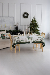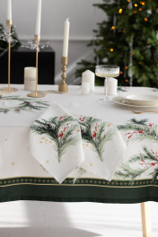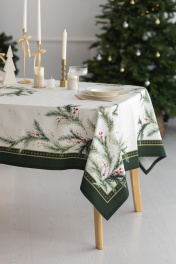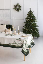 Скатерть "Ветви рождества", 100% хлопок Все скатерти коллекции «ВЕТВИ РОЖДЕСТВА» выполнены из ткани для столового белья плотностью 180 г/кв.м и имеют специальную пропитку (влаго-, масло- и грязеотталкивающую обработку). Принт на ткани нанесен методом цифровой печати с использованием высококачественных красителей, благодаря чему изделия не линяют и не меняют свой цвет после многократных стирок. Рисунок по ткани виден только на лицевой стороне. ЭКСКЛЮЗИВНЫЙ ДИЗАЙН: элегантный принт с веточками хвои и яркими красными ягодами создаёт изысканный и уютный акцент на вашем столе. Погрузитесь в атмосферу уюта и праздничного волшебства с нашей эксклюзивной коллекцией столового текстиля Ветви Рождества! УХОД ЗА ИЗДЕЛИЕМ: Изделия из натуральных тканей требуют особого ухода. Стирка при температуре 30 С; деликатный отжим (чтобы уменьшить смятость изделия), гладить изделия полувлажными при максимальной температуре, не отбеливать. Если при использовании изделий было нанесено пятно, рекомендуем испачканное изделие постирать не позднее следующего дня, т.к. натуральные нити ткани быстро впитывают натуральные красители еды и напитков (чай, кофе, соусы). При стирке изделий допускается использование пятновыводящих средств для цветного белья. После стирки возможна усадка изделия на 3-5%.