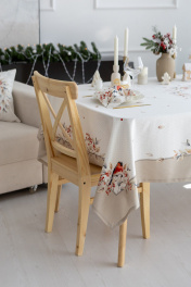 Скатерть "Пернатые истории", 100% хлопок/ Все скатерти коллекции «ПЕРНАТЫЕ ИСТОРИИ» выполнены из ткани для столового белья плотностью 180 г/кв.м и имеют специальную пропитку (влаго-, масло- и грязеотталкивающую обработку). Принт на ткани нанесен методом цифровой печати с использованием высококачественных красителей, благодаря чему изделия не линяют и не меняют свой цвет после многократных стирок. Рисунок по ткани виден только на лицевой стороне. ЭКСКЛЮЗИВНЫЙ ДИЗАЙН:Коллекция «Пернатые истории» — это зимняя сказка, сотканная из тепла, уюта и волшебства. В её центре — трогательные образы птиц, уютно устроившихся на заснеженных ветвях с яркими ягодами, словно наблюдающих за тем, как дом наполняется ожиданием праздника. «Пернатые истории» — это не просто декор. Это приглашение замедлиться, зажечь свечи, налить горячий чай и встретить Новый год в окружении красоты, вдохновлённой природой. УХОД ЗА ИЗДЕЛИЕМ: Изделия из натуральных тканей требуют особого ухода. Стирка при температуре 30 С; деликатный отжим (чтобы уменьшить смятость изделия), гладить изделия полувлажными при максимальной температуре, не отбеливать. Если при использовании изделий было нанесено пятно, рекомендуем испачканное изделие постирать не позднее следующего дня, т.к. натуральные нити ткани быстро впитывают натуральные красители еды и напитков (чай, кофе, соусы). При стирке изделий допускается использование пятновыводящих средств для цветного белья. После стирки возможна усадка изделия на 3-5%.