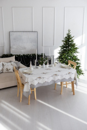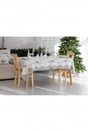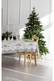 Скатерть "Стоун", 100% хлопок. Все скатерти коллекции «СТОУН» выполнены из ткани для столового белья плотностью 180г/кв.м и имеют специальную пропитку (влаго-, масло- и грязеотталкивающую обработку). Принт на ткани нанесен методом цифровой печати с использованием высококачественных красителей, благодаря чему изделия не линяют и не меняют свой цвет после многократных стирок. Рисунок по ткани виден только на лицевой стороне. ЭКСКЛЮЗИВНЫЙ ДИЗАЙН: гармония природной сдержанности и торжественной эстетики. Белоснежный фон с изысканным принтом в виде еловых веток и шишек создаёт атмосферу зимнего леса, наполненного светом и теплом. Идеальный выбор для тех, кто ценит стиль, уют и внимание к деталям. УХОД ЗА ИЗДЕЛИЕМ: Изделия из натуральных тканей требуют особого ухода. Стирка при температуре 30 С; деликатный отжим (чтобы уменьшить смятость изделия), гладить изделия полувлажными при максимальной температуре, не отбеливать. Если при использовании изделий было нанесено пятно, рекомендуем испачканное изделие постирать не позднее следующего дня, т.к. натуральные нити ткани быстро впитывают натуральные красители еды и напитков (чай, кофе, соусы). При стирке изделий допускается использование пятновыводящих средств для цветного белья. После стирки возможна усадка изделия на 3-5%.