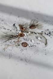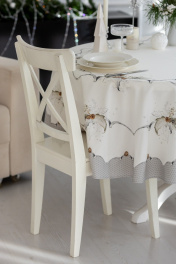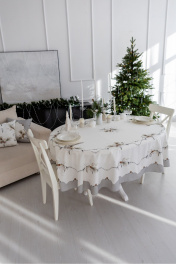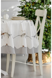 Скатерть "Стоун", 100% хлопок. Все скатерти коллекции «СТОУН» выполнены из ткани для столового белья плотностью 180г/кв.м и имеют специальную пропитку (влаго-, масло- и грязеотталкивающую обработку). Принт на ткани нанесен методом цифровой печати с использованием высококачественных красителей, благодаря чему изделия не линяют и не меняют свой цвет после многократных стирок. Рисунок по ткани виден только на лицевой стороне. ЭКСКЛЮЗИВНЫЙ ДИЗАЙН: гармония природной сдержанности и торжественной эстетики. Белоснежный фон с изысканным принтом в виде еловых веток и шишек создаёт атмосферу зимнего леса, наполненного светом и теплом. Идеальный выбор для тех, кто ценит стиль, уют и внимание к деталям. УХОД ЗА ИЗДЕЛИЕМ: Изделия из натуральных тканей требуют особого ухода. Стирка при температуре 30 С; деликатный отжим (чтобы уменьшить смятость изделия), гладить изделия полувлажными при максимальной температуре, не отбеливать. Если при использовании изделий было нанесено пятно, рекомендуем испачканное изделие постирать не позднее следующего дня, т.к. натуральные нити ткани быстро впитывают натуральные красители еды и напитков (чай, кофе, соусы). При стирке изделий допускается использование пятновыводящих средств для цветного белья. После стирки возможна усадка изделия на 3-5%.