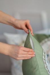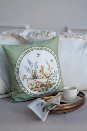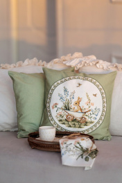 Декоративная наволочка "АРКАДИЯ" круг на зеленом выполнена из 100% хлопка высшего качества. Размер наволочки 40х40 см, на молнии.
