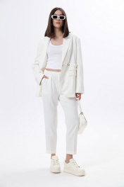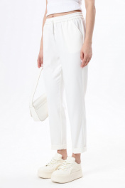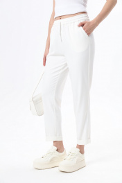 Зауженные брюки спортивного типа. Пояс на эластичной тесьме с кулисой и втянутым шнурком. Вход в карман фигурный, наклонный к боковому шву. Рост фотомодели 175 см. Размер у фотомодели – 44.