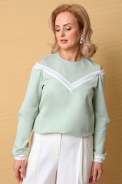 Комплект 2ка, состоящий из джемпера и брюк. Джемпер свободного объёма, оригинального кроя, с имитацией топа и открытыми плечами. Горловина круглая, по спинке застежка на петлю и пуговицу Отделка горловины джемпера и манжеты выполнены из довязов в контрастном цвете. Брюки широкого объема, прямого силуэта. На передних половинках брюк заутюжены стрелки, переходящие в складки по линии талии. На задних половинках также заутюжены стрелки. В боковых швах расположены карманы. Застежка-гульфик. Пояс отрезной, притачной. В задней части пояса вставлена эластичная тесьма (резинка). На пояс настрочены шлевки. Выступающая часть пояса застегивается на петлю и крючок. Рост модели 170, размер 48. СОВЕТ ОТ СТИЛИСТА: из обуви отлично подойдут лодочки. Для образа "выходного дня" сделайте выбор в пользу кроссовок или кед.