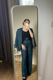 Широкие прямые брюки с карманами из текстиля LM ИК5392 изумруд