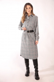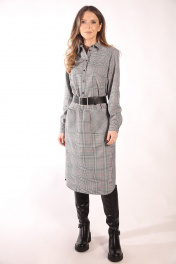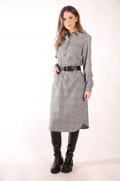 Демисезонное платье-рубашка в клетку с поясом из текстиля LM KB1281