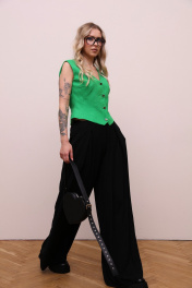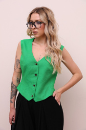 Зеленый летний жилет из льна с рельефами и пуговицами LM КБ5365 зелень