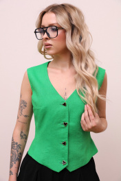 Леновые широкие брюки и прилегающий жилет из текстиля LM КБ5387 зелень