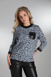 Демисезонный трикотажный джемпер с карманом из эко-кожи LM ЛК8013