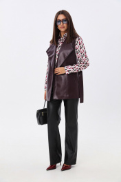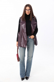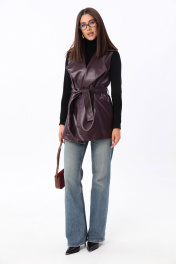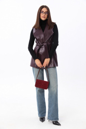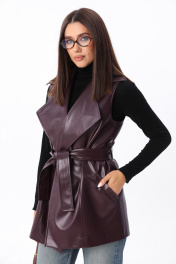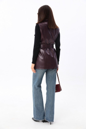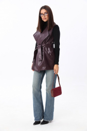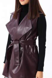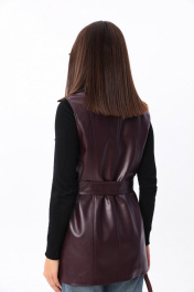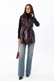 Удлинённый жилет из экокожи с поясом и отложным воротником. По бокам расположены удобные карманы. Рост фотомодели 175 см. Размер у фотомодели – 44.