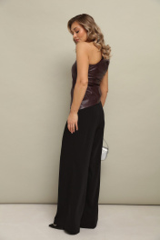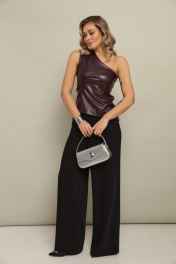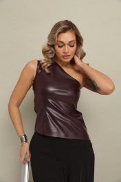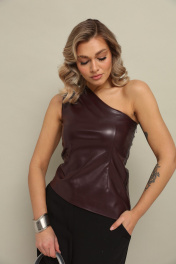 Топ на одно плечо из эко кожи без рукавов, с застежкой на молнию по боковому шву облегающего силуэта.