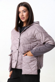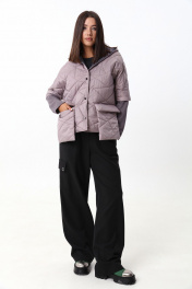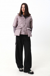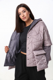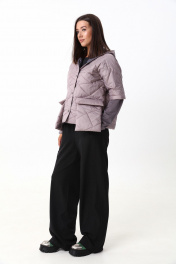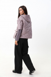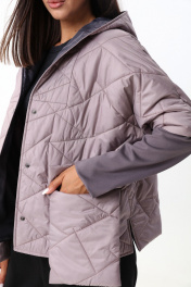Укороченная куртка с капюшоном и застежкой на кнопки. Рукава куртки состоят из двух видов ткани. По переду куртка дополнена накладными карманами с клапаном , выходящими за пределы длины куртки. Рост фотомодели 175 см. Размер у фотомодели – 44.