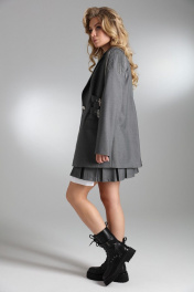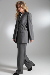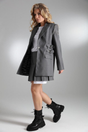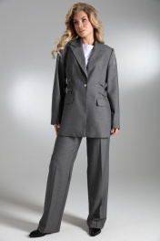 Однобортный объёмный жакет на подкладке прямого силуэта из костюмной полушерстяной ткани высокого качества. По переду изделия прорезные карманы с клапанами. Рукава втачные двухшовные. Спинка со средним швом и завышенной шлицей. В качестве декора по верхней части оката рукавов пришиты цепочки, а по бокам выполнена имитация ремней из основной ткани с люверсами и пряжкой. Фурнитура и материалы отделки могут незначительно отличаться от тех, что на фотографии Рост фотомодели 169 см. Размер у фотомодели – 44.