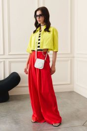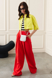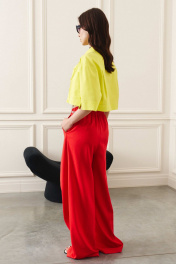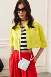 Жакет выполнен из хлопкового денима. Рукав рубашечного кроя. По передней планке застёжка на пуговицы, по бокам накладные функциональные карманы. По спинке по линии притачивания кокетки защипы. Жакет: Обхват груди: 112-114-118 см (размер 44-46-48) Обхват бёдер: 108-110-112 см (размер 44-46-48) Ширина рукава: 44-45-46 (размер 44-46-48) Длина рукава: 29-30-31 см (размер 44-46-48) Длина по спинке: 43 см
