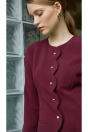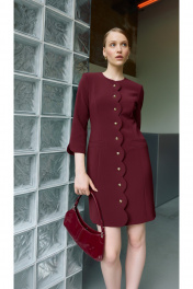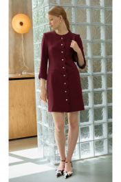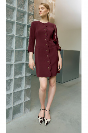 Платье полуприлегающего силуэта, по переду и спинке на подкладке. Рукав втачной ¾, по низу фигурный. Округлый вырез горловины, застежка центральная на петли и пуговицы, борт фигурной формы. По вертикальный рельефы и прорезные карманы. По спинке средний шов и вертикальные рельефы. Длина по спинке от высшей точки горловины: 90 см Длина рукава: 48 см ОГ: 90-94-98-12-106 см (размер 44-46-48-50-52) ОТ: 76-80-84-88-92 см (размер 44-46-48-50-52) ОБ: 92-96-100-104-108 см (размер 44-46-48-50-52)