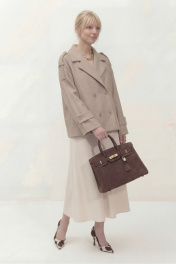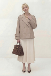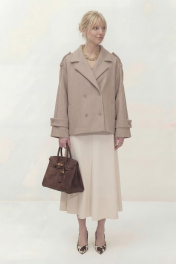 Укороченное двубортное пальто свободного кроя. Широкий английский воротник с заостренными лацканами. Застежка на два ряда пуговиц. Рукав реглан на манжете с пуговицей. На плечах элементы напоминающие погоны. Полупальто: Длина пальто по спинке от высшей точки горловины: 67,5 см Длина рукава от горловины: 72 см ОГ: 118-122-126-130-134 см (размер 44-46-48-50-52)