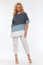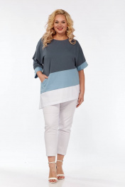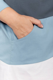 Туника женская, асимметричная. Рукав цельнокроеный, асимметрия, по низу приточная манжета. Туника изготовлена из трикотажного полотна плюс плательный хлопок, двух цветов. Горловина округлая, обработана трикотажной бейкой. Справа подреза обработан карман. 52р: Объем груди - 63 см, объем бедер - 64 см, длина изделия - 72 см, ширина по низу - 64 см; 64р: Объем груди - 80 см, объем бедер - 76 см, длина изделия - 74 см, ширина по низу - 76+ см.