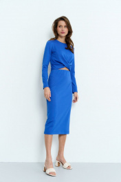 Трикотажный костюм джемпер с узлом и юбка-карандаш Luitui R4016 ярко-синий