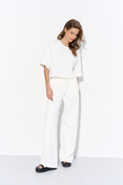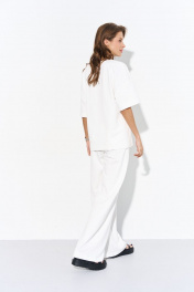 Летний костюм из трикотажа с широкими брюками и джемпером Luitui R4025 молочный