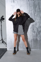Серая и черная рубашка из хлопка с накладными карманами Luna 011 графит