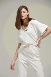 Комбинированный костюм из вискозы: брюки и жакет Luna 044 молоко
