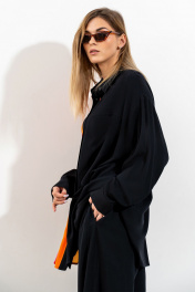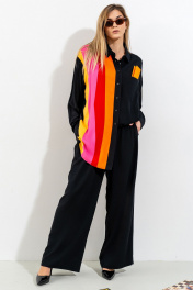 Костюм(рубашка,брюки). Рубашка прямого силуэта с центральной застежкой, кокеткой и карманом на левой полочке. Брюки актуального кроя высокой посадки на притачном поясе на резинке. длина рубашки-82см, длиина брюк-104см