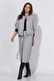 Демисезонный костюм с бомбером и юбкой в стильном минимализме Luna 181 серый