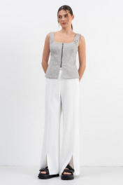 Топ-корсет приталенного силуэта из хлопка,с центральной застёжкой на молнию,функциональная застёжка не только декорирует изделие,но и обеспечивает удобство в носке.В дополнении к цвету молнии съёмная брошь.