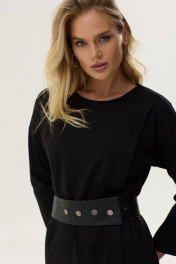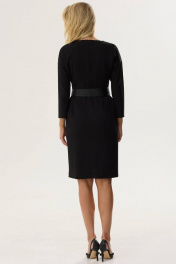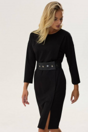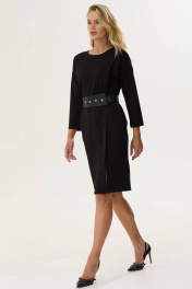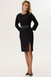 Стильное платье прямого силуэта из трикотажного полотна. Горловина округлая на спинке застежка на молнию. Рукав со спущенной линией плеча длиной 7/8. По переду левой стороны декоративная складка, переходящая в шлицу. По переду справа – нагрудная вытачка. В комплект входит съемный пояс из экокожи. Обращаем ваше внимание, что фурнитура может незначительно отличаться от фото.