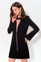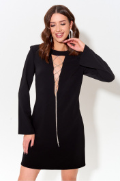 Нарядное платье длины мини, приталенного силуэта. По переду платья расположен v-образный вырез, с шнуровкой из декоративного шнура из страз. Рукав втачной, прилегающий. По спинке расположены талиевые вытачки и потайная молния. Обращаем ваше внимание, что фурнитура может незначительно отличаться от фото. Длина рукава 63 см. Длина изделия 42-46 85 см 48-50 89 см.