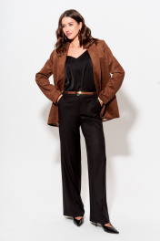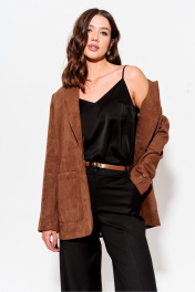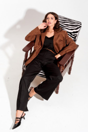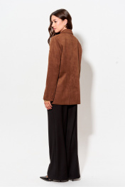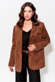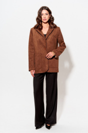 Жакет прямого силуэта из замши. Воротник пиджачного типа с центральной застежкой на петлю и пуговицу. Рукав втачной двухшовный с декоративной шлицей и пуговицами. По переду и спинке талиевые вытачки. По переду карманы с клапанами и листочками. В верхней части левой полочки декоративная листочка. Жакет на подкладке. Обращаем ваше внимание, что фурнитура может незначительно отличаться от фото. Длина жакета (44-48р – 72 см)(50-54р – 75 см). Длина рукава 63 см.