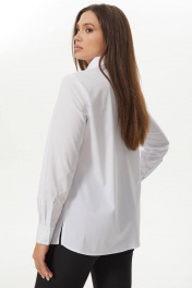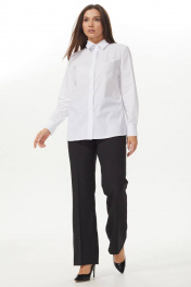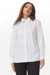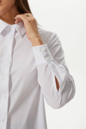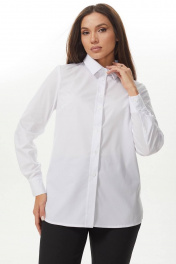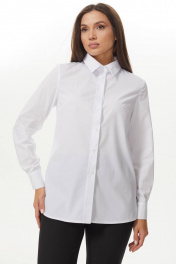 Хлопковая рубашка Ma Сhérie прямого силуэта с разрезами в боковых швах. Воротник отложной на стойке. Застежка центральная на петли и пуговицы, спинка цельная. Рукав длинный втачной, одношовный с односторонними складками и притачной манжетой по низу. Рубашка идеально подойдет для офиса и повседневных образов. Сфотографирована с нашими брюками из костюмной ткани 2023.