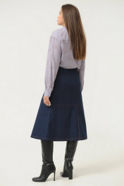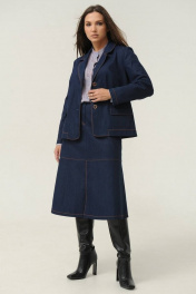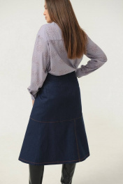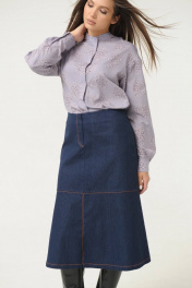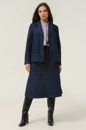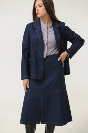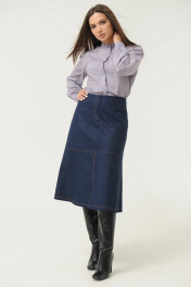 Женская юбка Ma Сhérie из джинсовой ткани. Юбка на притачном поясе. По переду горизонтальный подрез и средний шов с разрезом. На задней части талиевые вытачки, средний шов и горизонтальный подрез. Застежка на потайную тесьму-молнию на задней половинке в среднем шве. Юбка декорирована отделочной строчкой контрастного цвета. Можно приобрести в комплекте с жакетом - модель 3014.