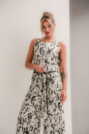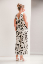 Комбинезон летний полуприлегающий с запахом и карманами Ma Vie М-142/1 молочно-черный